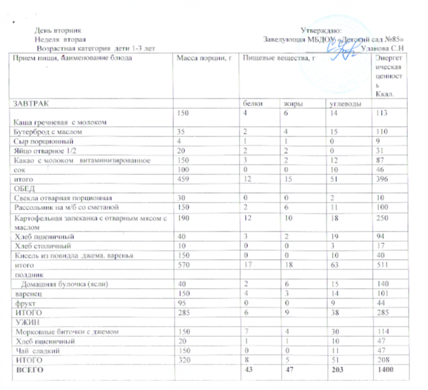 Питание осуществляется в соответствии с основным (организованным) меню, разработанным в соответствии с требованиями и рекомендациями СанПиН 2.3/2.4.3590-20. Объем пищи и выход блюд соответствуют возрасту детей. В рационе присутствуют свежие фрукты, овощи, соки, кисломолочные продукты.
